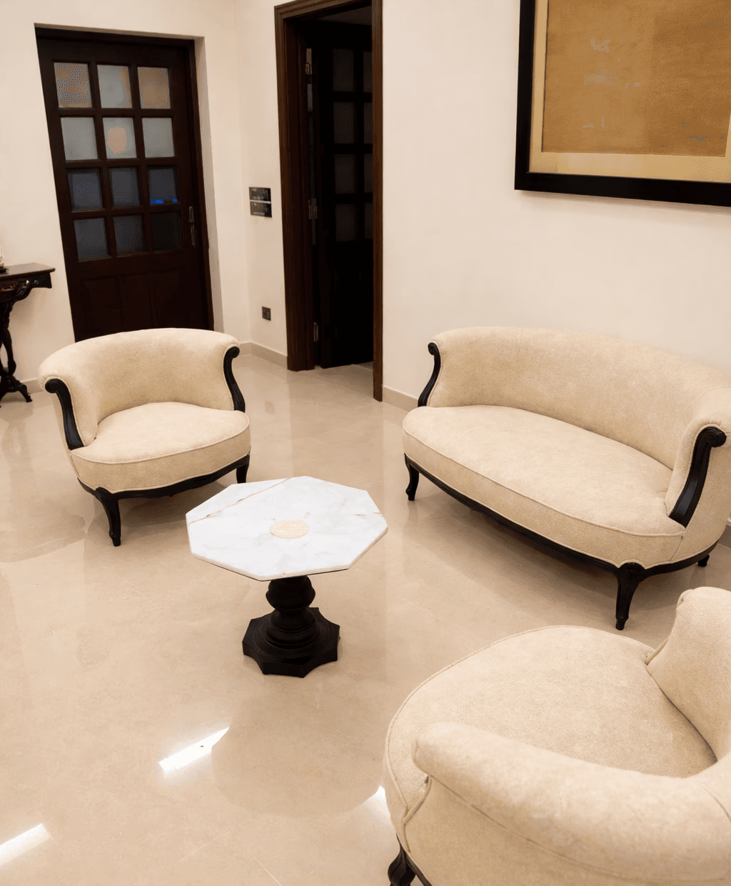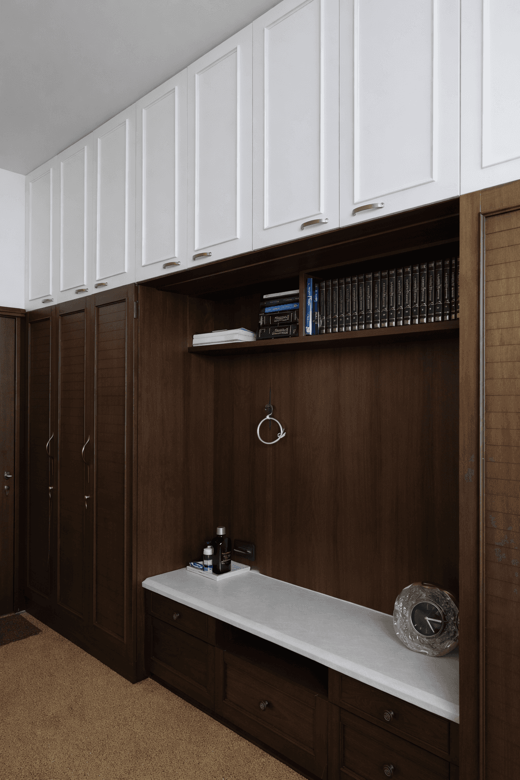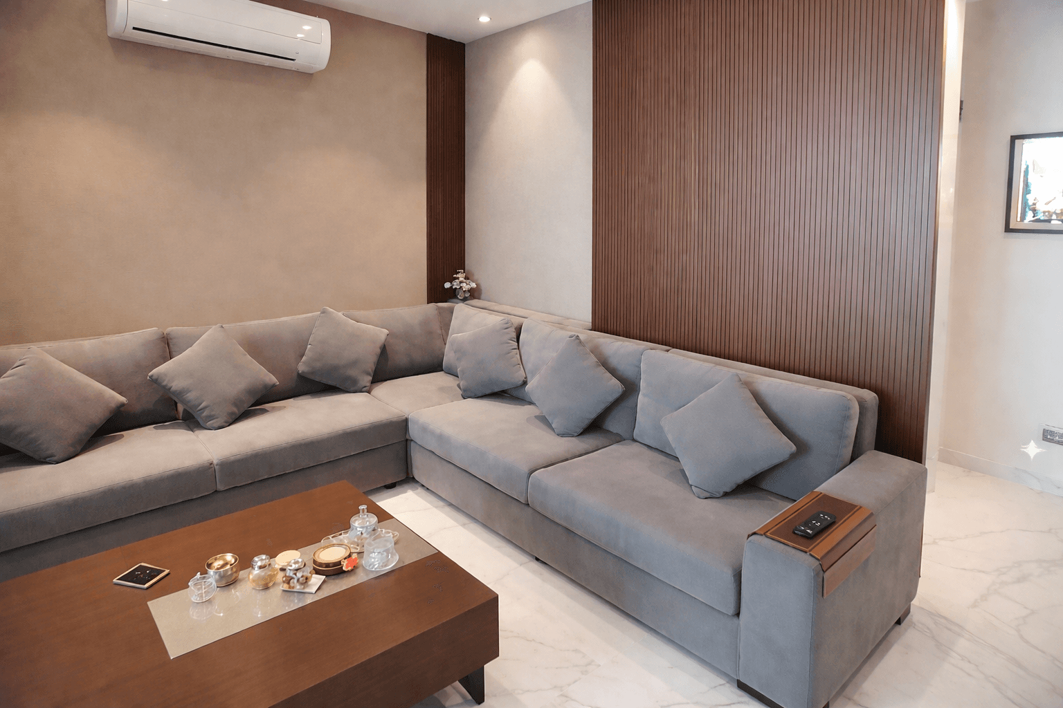 Dr. Chatterjee’s home renovation was a comprehensive transformation designed to elevate both functionality and aesthetic appeal across the living room, kitchen, bedroom, bathroom, and custom storage areas. The goal was to create a modern, well-balanced interior that supports a busy professional lifestyle while maintaining warmth and comfort.